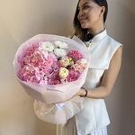 Шикарный авторский букет, способный украсить любое торжество. Композиция включает в себя одну пышную гортензию, грациозный лизиантус, три цветка диантуса и одну премиальную хризантему. Это уникальное сочетание цветов, способное передать чувство утонченности и высокого вкуса. Такой букет способен удивить и порадовать даже самых требовательных ценителей цветочной красоты.