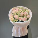 🌹 15 классических роз и 5 нежных ромашек — утончённый букет с тёплой подачей. Оформлен с любовью и вниманием к деталям, отлично подойдёт для любого повода.