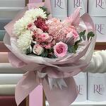 Альстромерия - 3 шт. Гортензия - 1 шт. хризантемы - 3 шт. розы - 7 шт.
