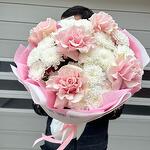Нежный изысканный букет из стойких ароматных хризантем и голландских сортовых роз, а также мы всегда высылаем фото перед отправкой ❤️