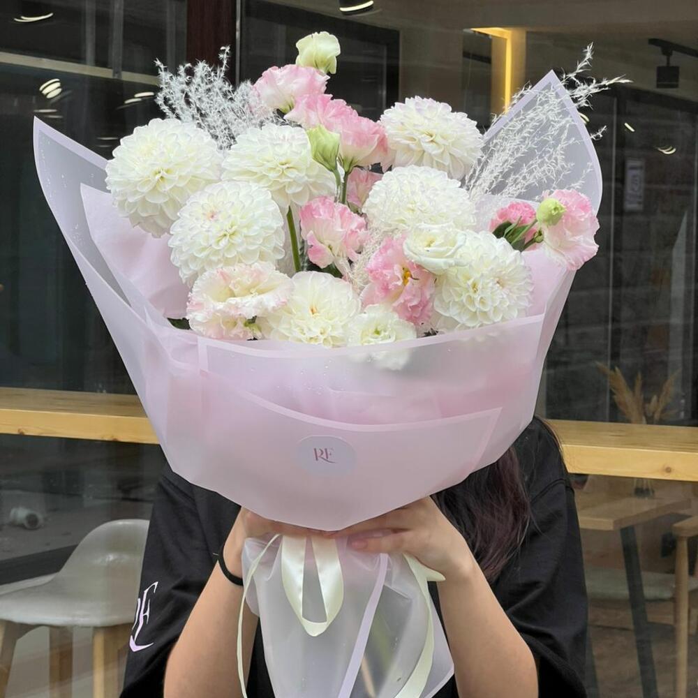 лизиантусы - 3 шт. георгины - 7 шт.