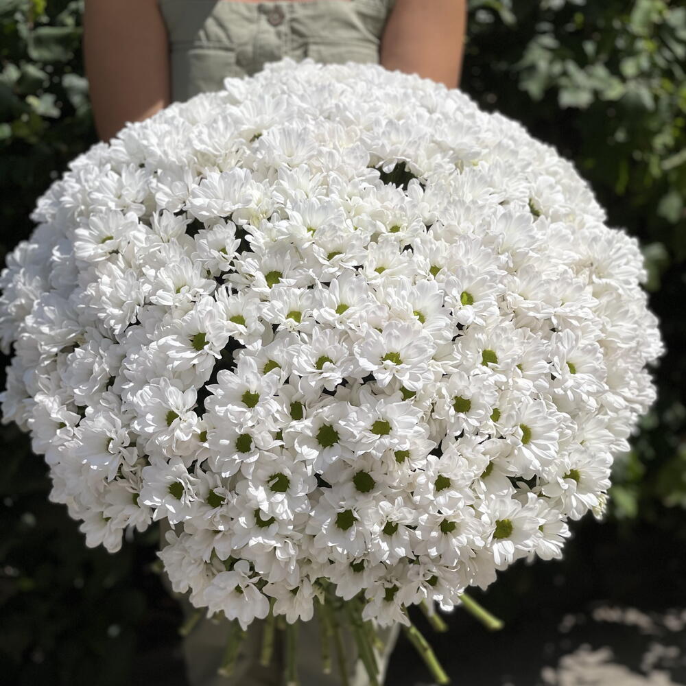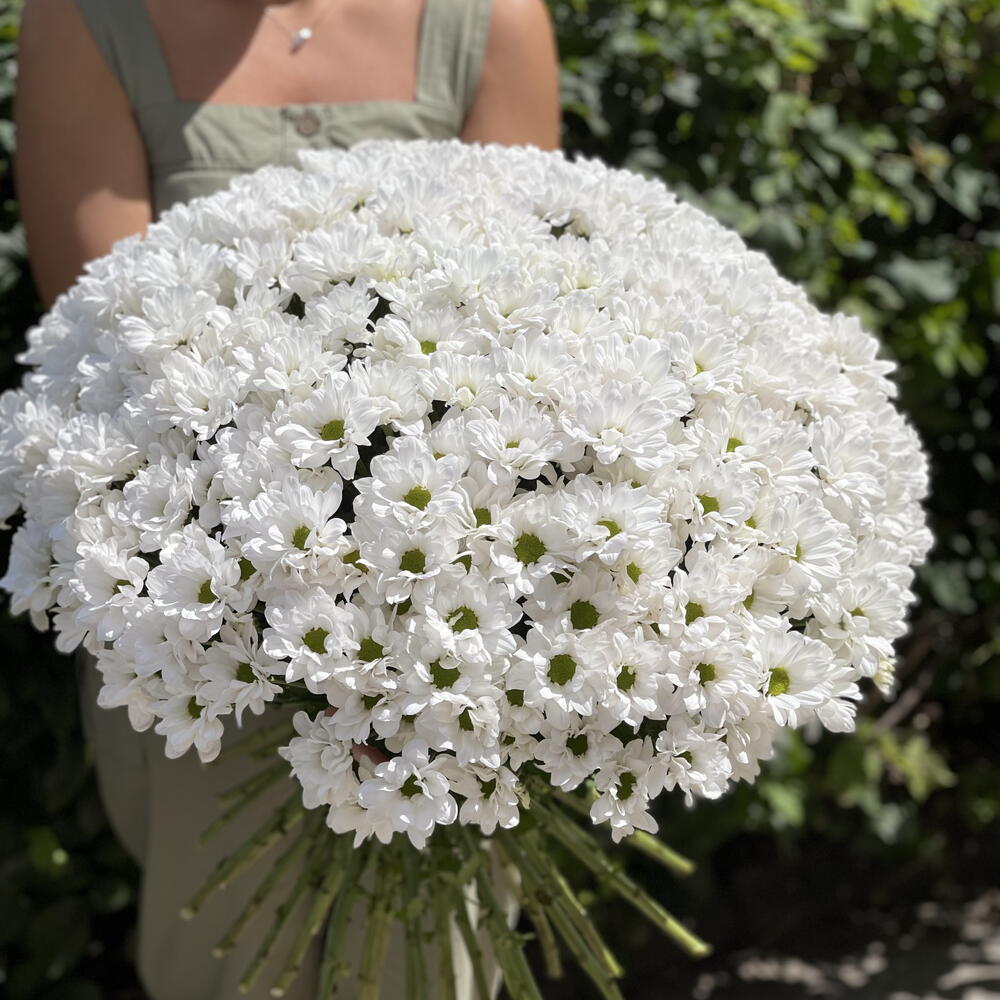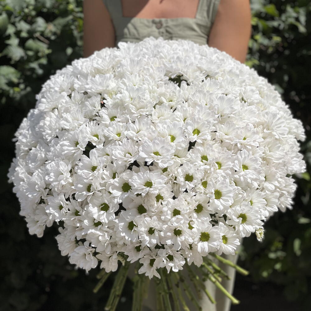 Представьте себе не просто букет, а целое поле ромашковых хризантем, собранное в ваших руках. Это не композиция, а настоящая цветочная симфония, монументальная, роскошная и поражающая воображение. Это взрыв чистоты и света, который невозможно оставить без внимания. Невероятная жизненная сила. Хризантемы известны своей стойкостью. Такой огромный букет будет стоять не менее двух недель, ежедневно напоминая о вашем щедром жесте и даря прекрасное настроение. Это не мимолетный сюрприз, а долговременный источник позитива.🌞 Юбилей или день рождения. Подарите тот самый «главный» букет, который затмит все остальные подарки.✨ Наш курьер быстро доставит букет и бережно вручит его прямо в руки счастливому получателю.🚚