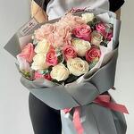 Красивый, пышный букет. Видно что свежий. Но, я просила положить пустую открытку чтобы самой подписать - но не положили. А так, все ок