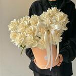 Красивый, пышный букет. Видно что свежий. Но, я просила положить пустую открытку чтобы самой подписать - но не положили. А так, все ок