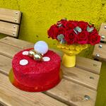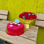 Эвкалипт - 10 шт. розы - 15 шт. торт 1 килограмм - 1 шт.