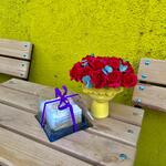 Букет роз в хэнд-мейд вазе и бенто тортик торт