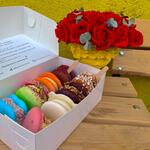 Букет роз в хэнд-мейд вазе и бокс макаронс