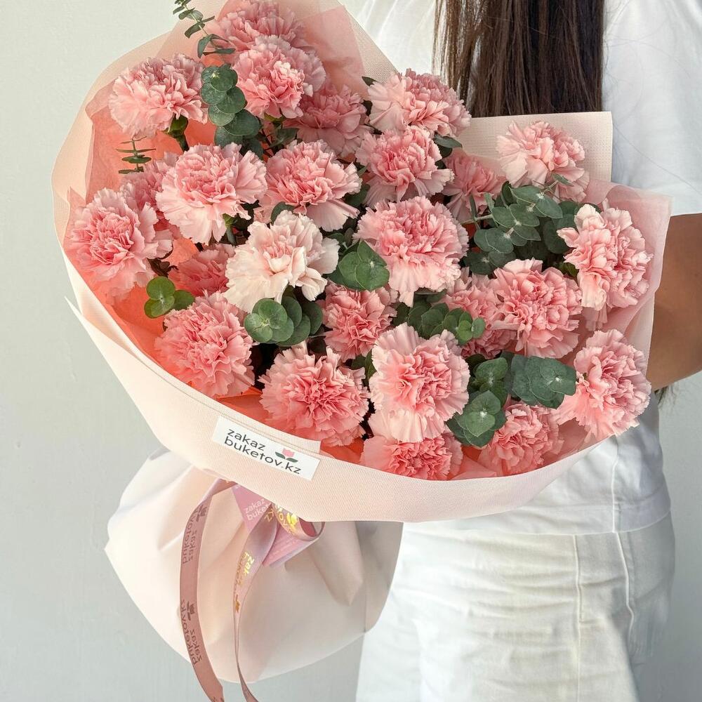 Самые нежные гвоздики (диантусы) в букете с эвкалиптом подарят отличное настроение. Если Вы хотите подарить незабываемые эмоции дорогому человеку — закажите доставку цветов в Zakazbuketovkz