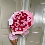 101 роза микс в нежно-розовом оформлении — воздушно, женственно и очень романтично.