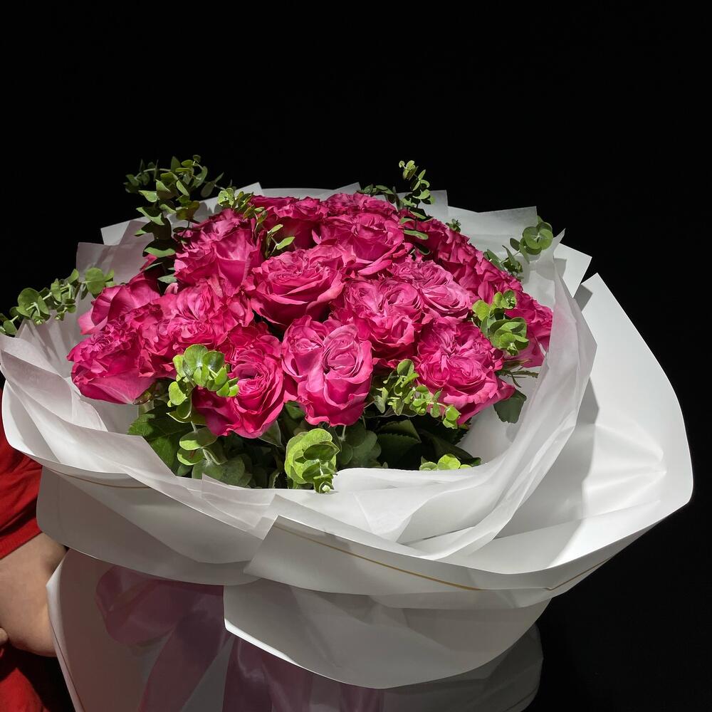 Букет из розовых роз - это красивое и нежное сочетание цветов. Розовые розы символизируют любовь, нежность и красоту. Этот букет будет прекрасным подарком для особого человека или для особого случая. Он создаст атмосферу романтики и придаст нежности любому помещению.