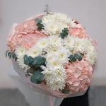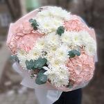 Букет Розовый Инь-Янь с гортензиями и хризантемой