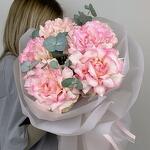 Этот воздушный букет сочетает в себе нежно-розовые розы с плавными переходами цвета, напоминающие первые лучи солнца на утреннем небе. Дополненный эвкалиптом и стильной упаковкой в белых тонах, он выглядит элегантно и утончённо. Идеально подойдёт для романтического подарка, благодарности или просто для того, чтобы порадовать близкого человека.