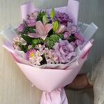 Флорист связалась сразу во время составления композиции, букет свежий и яркий! Доставка во время. Спасибо большое