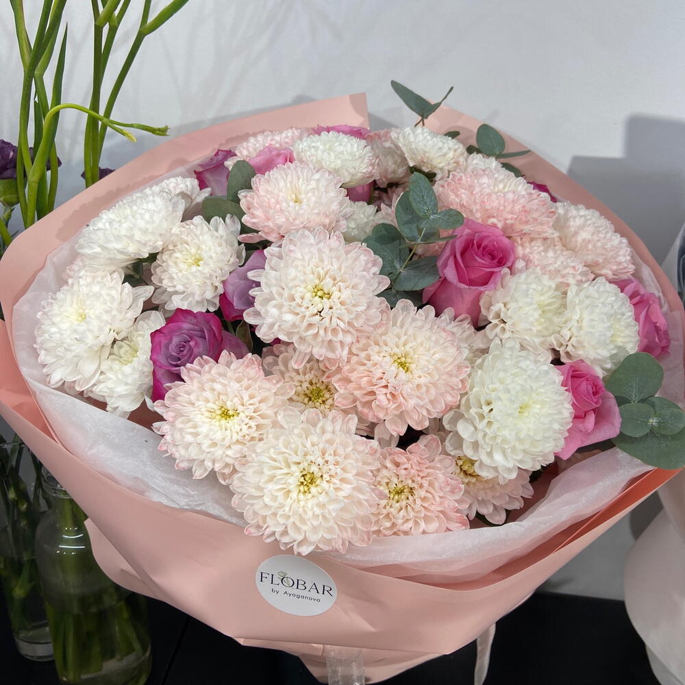 Эвкалипт Цинерея - 1 шт. балтика белая - 7 шт. эквадор роза 40 см - 9 шт.