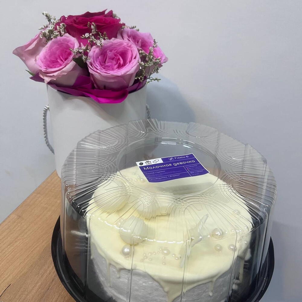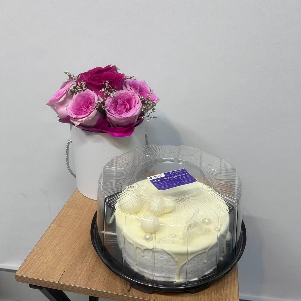 Букет роз Нежная цветочная композиция в стильной белой коробке. Букет состоит из розовых и насыщенно-малиновых роз, дополненных изящными веточками гипсофилы. Символизирует искреннюю любовь, заботу и романтические чувства. Идеальный подарок, чтобы сказать «я люблю тебя» без слов. Торт кг Нежный и стильный торт, приготовленный из натуральных ингредиентов. Идеально подходит для праздников, романтических вечеров и особых дат, включая День Святого Валентина. Вес торта рассчитывается по килограммам — удобно для любой компании. Начинки на выбор: 🍫 Шоколадный Блис — насыщенные шоколадные коржи с нежным шоколадным кремом. Для настоящих любителей шоколада. 🍰 Дольче Вита — мягкие ванильные коржи с воздушным сливочным кремом и лёгкой сладостью. Очень нежный и сбалансированный вкус. 🧁 Вупи Пай — шоколадные коржи с крем-чизом, сочный и яркий вкус, любимчик и взрослых, и детей. 🥛 Молочная Девочка — тонкие молочные коржи со сливочным кремом, тает во рту, максимально нежный вариант. ❤️ Красный Бархат — эффектные красные коржи с крем-чизом, классика с лёгкой шоколадной ноткой и сливочной нежностью.