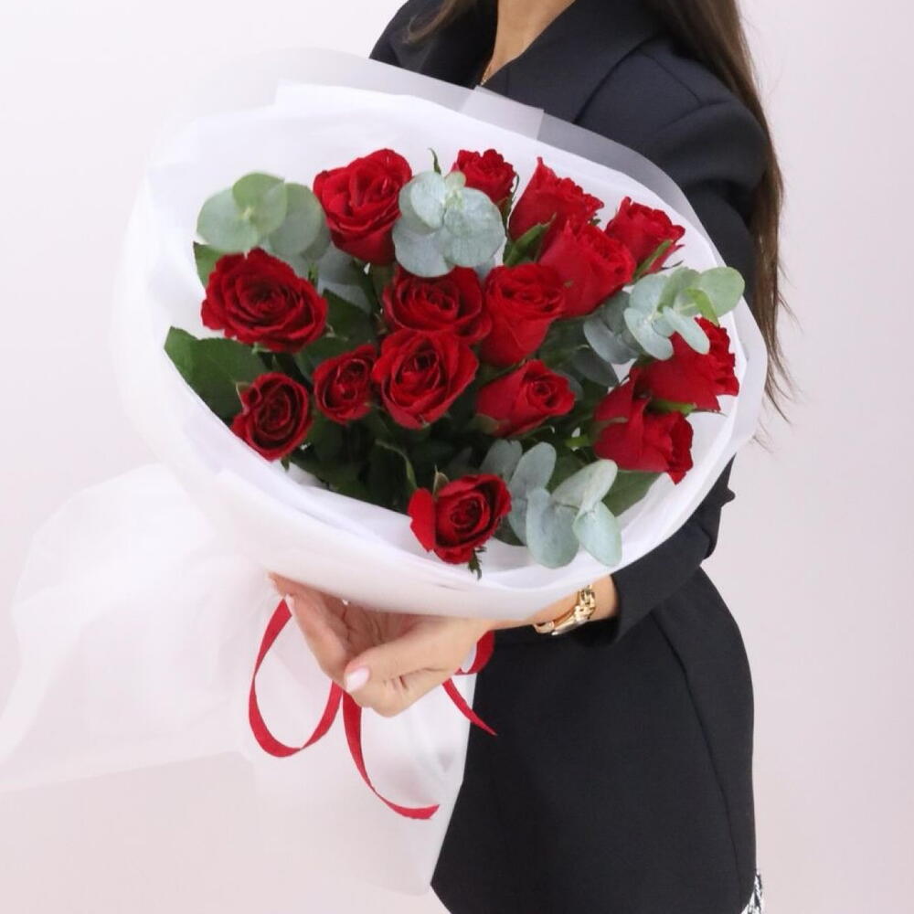 Букет розы с эвкалиптом