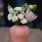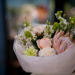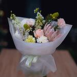 Маттиола - 3 шт. Протея - 1 шт. Эустома - 1 шт. Диантус - 2 шт. Орнитогалум - 3 шт. Упаковка дизайнерская - 1 шт. Аквабокс - 1 шт. Туя - 1 шт. Хризантема магнум - 2 шт. открытка на выбор - 1 шт. роза джульетта одноголовая - 1 шт. витамины для цветов - 1 шт.