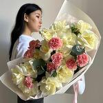 Эвкалипт - 1 шт. голландские розы - 15 шт. диантусы - 8 шт.