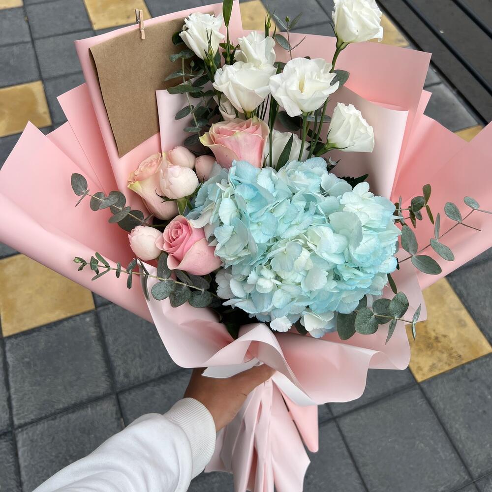 Букет с голубой гортензией