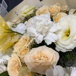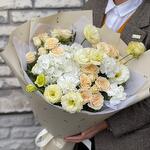 Гортензия - 1 шт. Лизиантус - 3 шт. Гвоздика - 3 шт. Спрей роза - 3 шт.