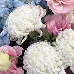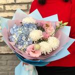Гортензия - 1 шт. Лизиантус - 2 шт. хризантемы одноголовые - 5 шт.
