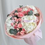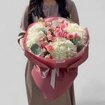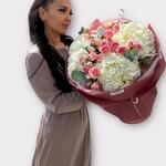 Роза кустовая - 6 шт. Эвкалипт - 2 шт. Гортензия розовая - 3 шт.