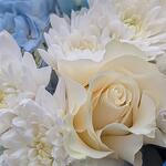 Гортензия - 1 шт. Хризантема кустовая - 4 шт. Роза - 5 шт. Лагурус (сухоцвет) - 9 шт.