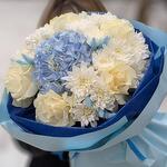 Букет с гортензией, розами, хризантемами "Синий коктейль" М