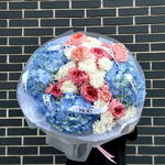 Хризантема - 5 шт. гортензии - 3 шт. пионовидные розы - 7 шт. кустовые розы - 3 шт.
