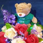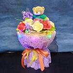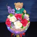 Букет из мыльных роз с мягкой игрушкой, с подсветкой из светодиодной гирлянды, станет оригинальным подарком для любимой женщины, девушки, мамы, коллеги