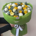 Лимониум - 9 шт. Эвкалипт - 7 шт. Роза - 9 шт. момоко - 10 шт. Ранункулус - 10 шт.