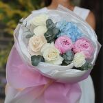 Гортензия - 1 шт. Пион - 2 шт. Эвкалипт - 5 шт. Роза - 3 шт. Диантус - 2 шт.