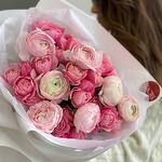 Кустовая роза - 8 шт. Ранункулюс - 7 шт.
