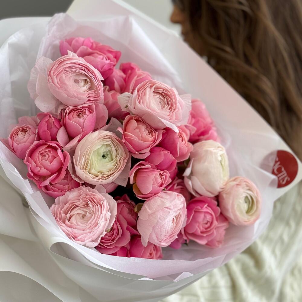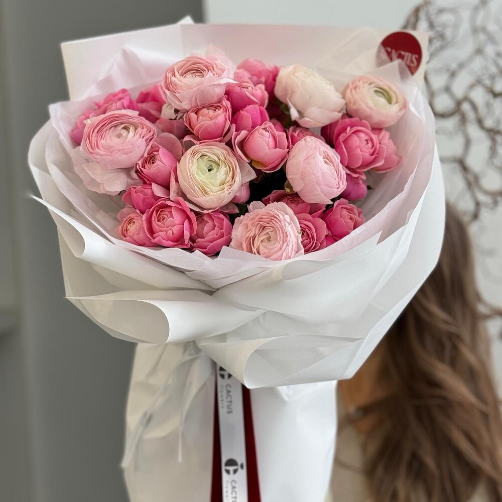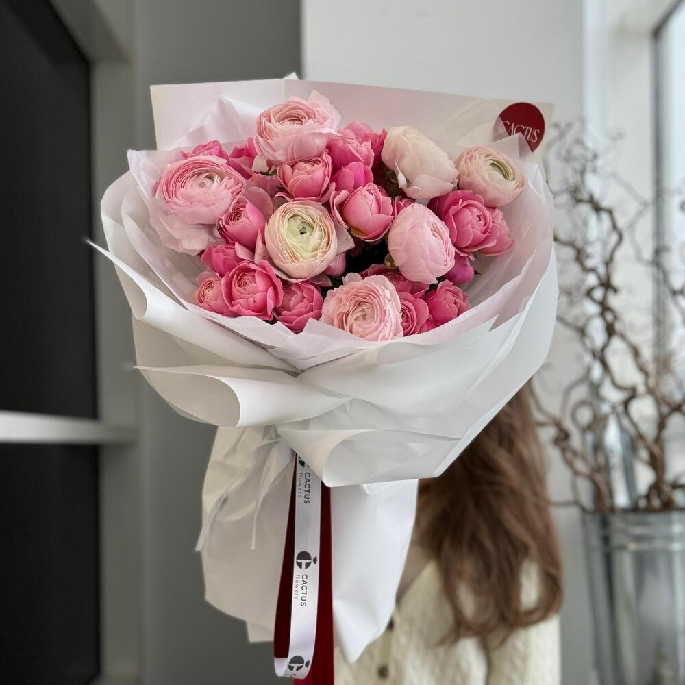 Кустовая роза - 8 шт. Ранункулюс - 7 шт.