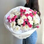 Этот великолепный авторский букет будет замечательным подарком для любого события. Он состоит из 5 свежесрезанных хризантем и 5 кустовых роз, что создает сочетание изысканности и нежности. Букет богат окрасками и формами, что придает ему уникальный и привлекательный вид. Погрузитесь в мир цветов и ароматов с этим изысканным букетом!