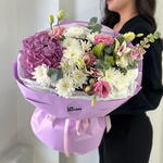 Гортензия - 1 шт. Лилия - 1 шт. Маттиола - 1 шт. Хризантема - 4 шт. Эустома - 3 шт.