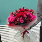 Роза кустовая - 7 шт. Оформление - 7 шт. альстромерия красная - 4 шт.