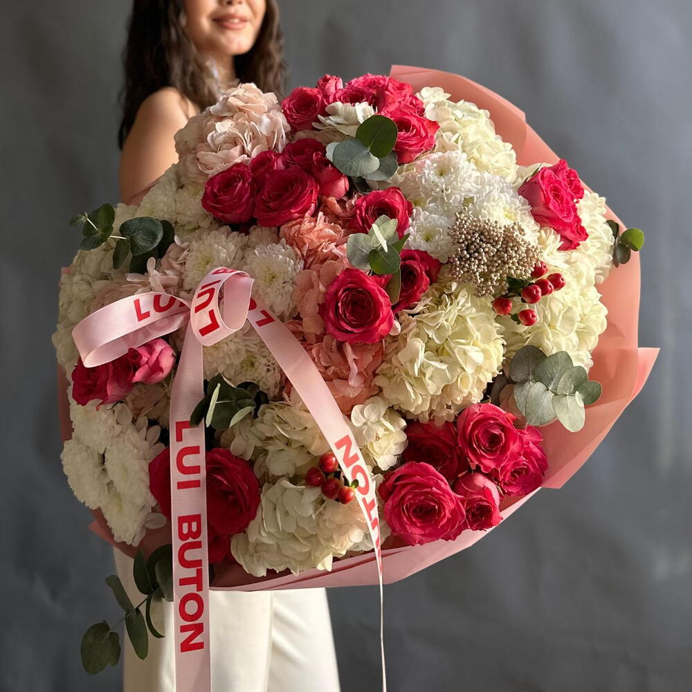 Этот букет выглядит как эмоция, собранная в цветах. Он притягивает внимание своей подачей и оставляет очень тёплое впечатление