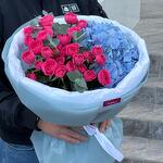Гортензия - 1 шт. Роза кустовая - 5 шт. Эвкалипт - 1 шт.