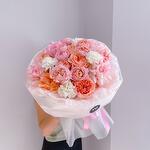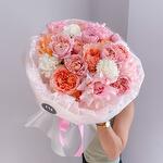 голландские розы - 3 шт. пионовидные розы - 5 шт. кустовые розы - 3 шт. диантусы - 4 шт.