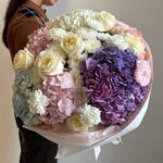 Гортензия - 6 шт. Хризантема - 4 шт. Диантус - 5 шт. Ранункулюс - 1 шт. пионовидные розы - 6 шт.