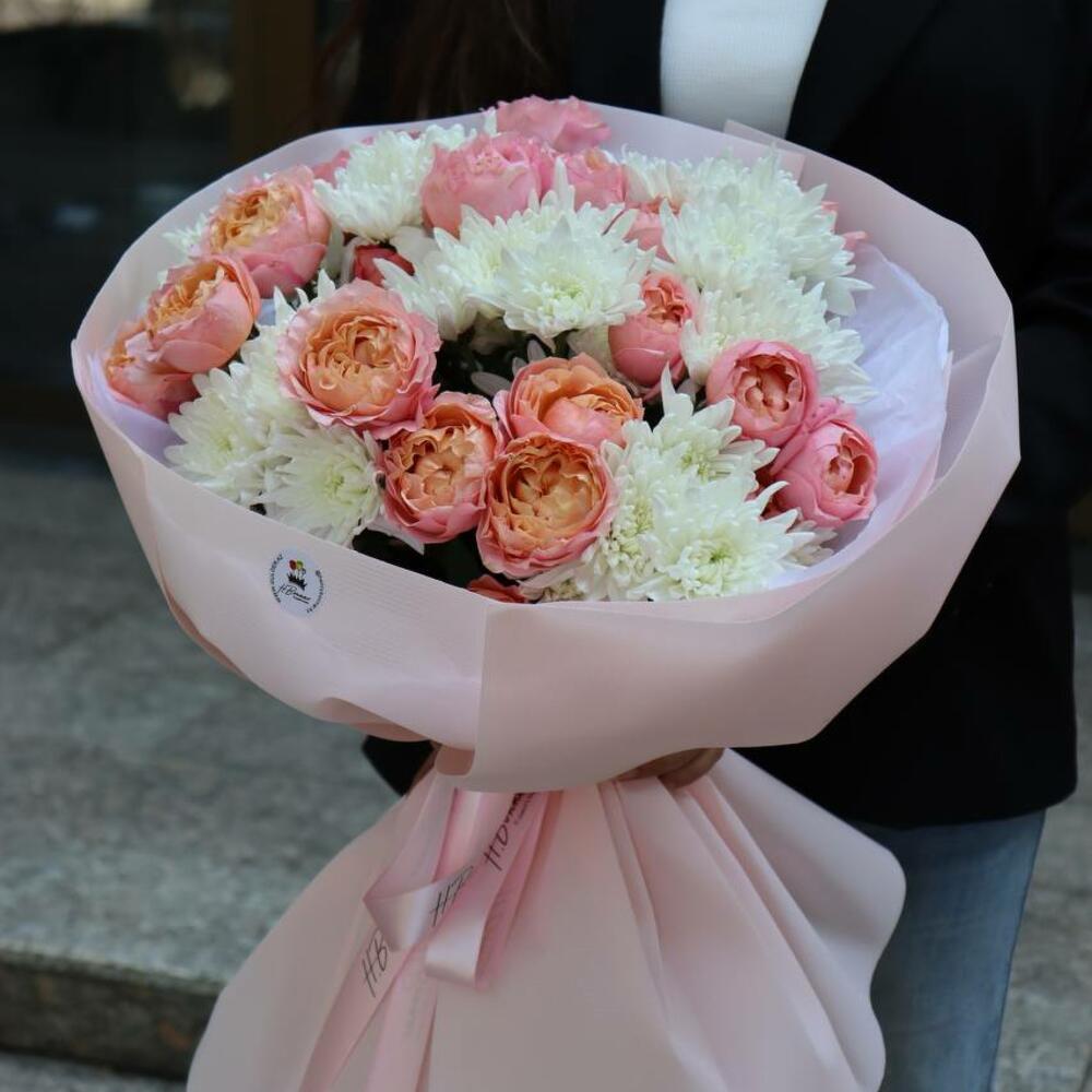 Кустовая роза - 5 шт. Хризантема - 5 шт.