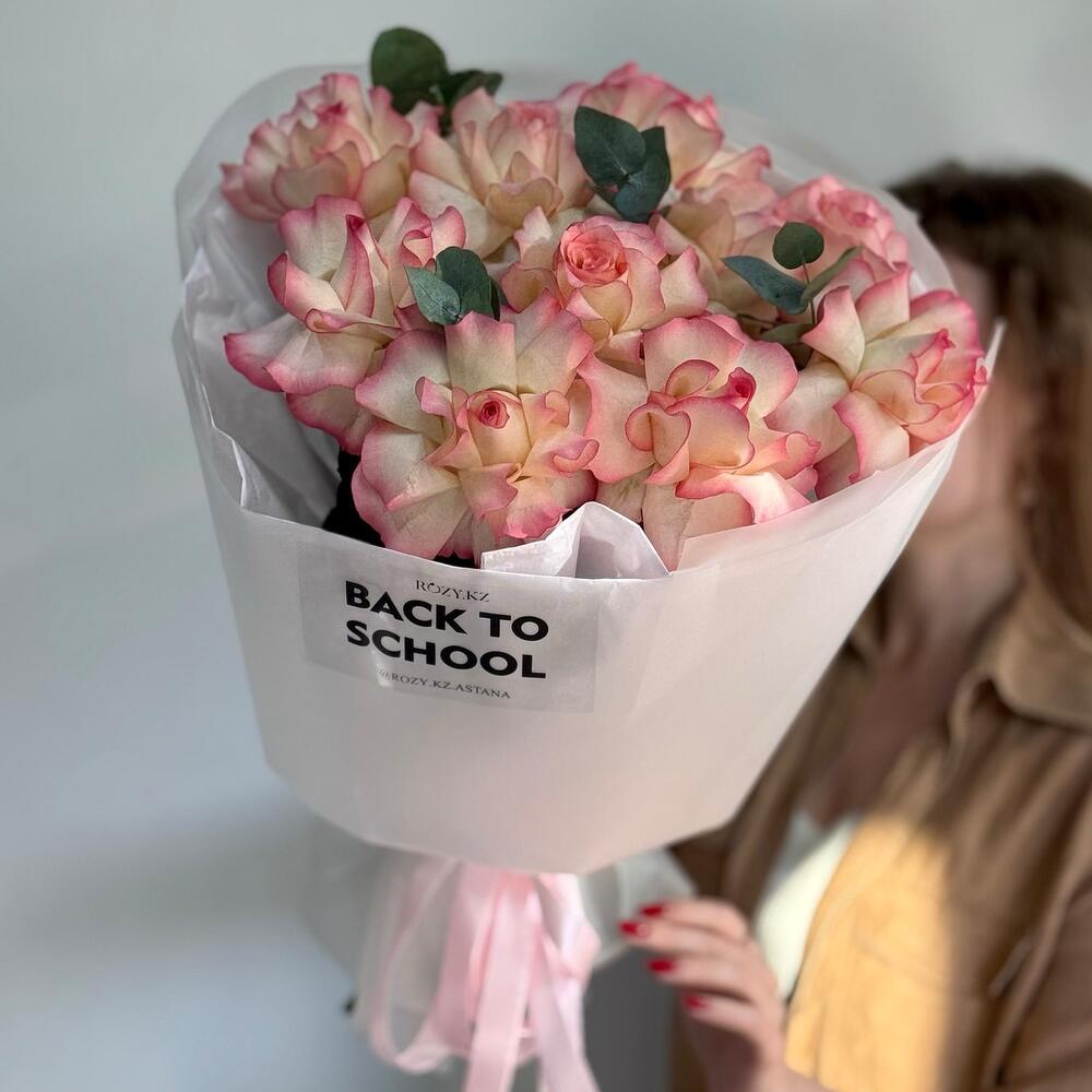 Эвкалипт - 2 шт. Упаковка дизайнерская - 5 шт. Роза Джумилия - 9 шт.