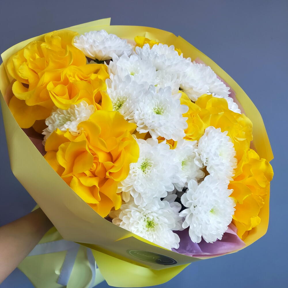 Хризантема кустовая - 4 шт. Роза - 7 шт.