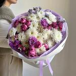 Букет из кустовых пионовидных роз, маттиолы, диантусов, озотамнуса и хризантем - станет главным акцентом любого праздника и останется в памяти надолго