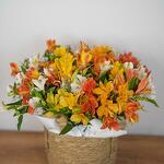 Яркий, солнечный и по-настоящему жизнерадостный букет Sunshine Melody — это всплеск теплых эмоций и хорошего настроения. В его составе 21 алстрамерия — цветок, символизирующий дружбу, преданность и искренность. Букет оформлен в стильную корзину с джутовым плетением, что придаёт ему особый уют и природную гармонию. Комбинация оранжевых, жёлтых и белых оттенков создаёт эффект тёплого летнего дня, наполненного светом и счастьем. Каждая алстрамерия раскрывает свои нежные лепестки, будто лучики солнца, окружённые свежей зеленью.