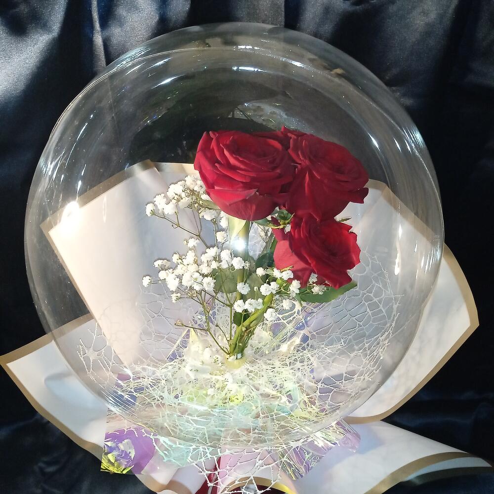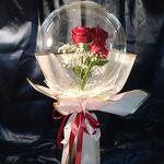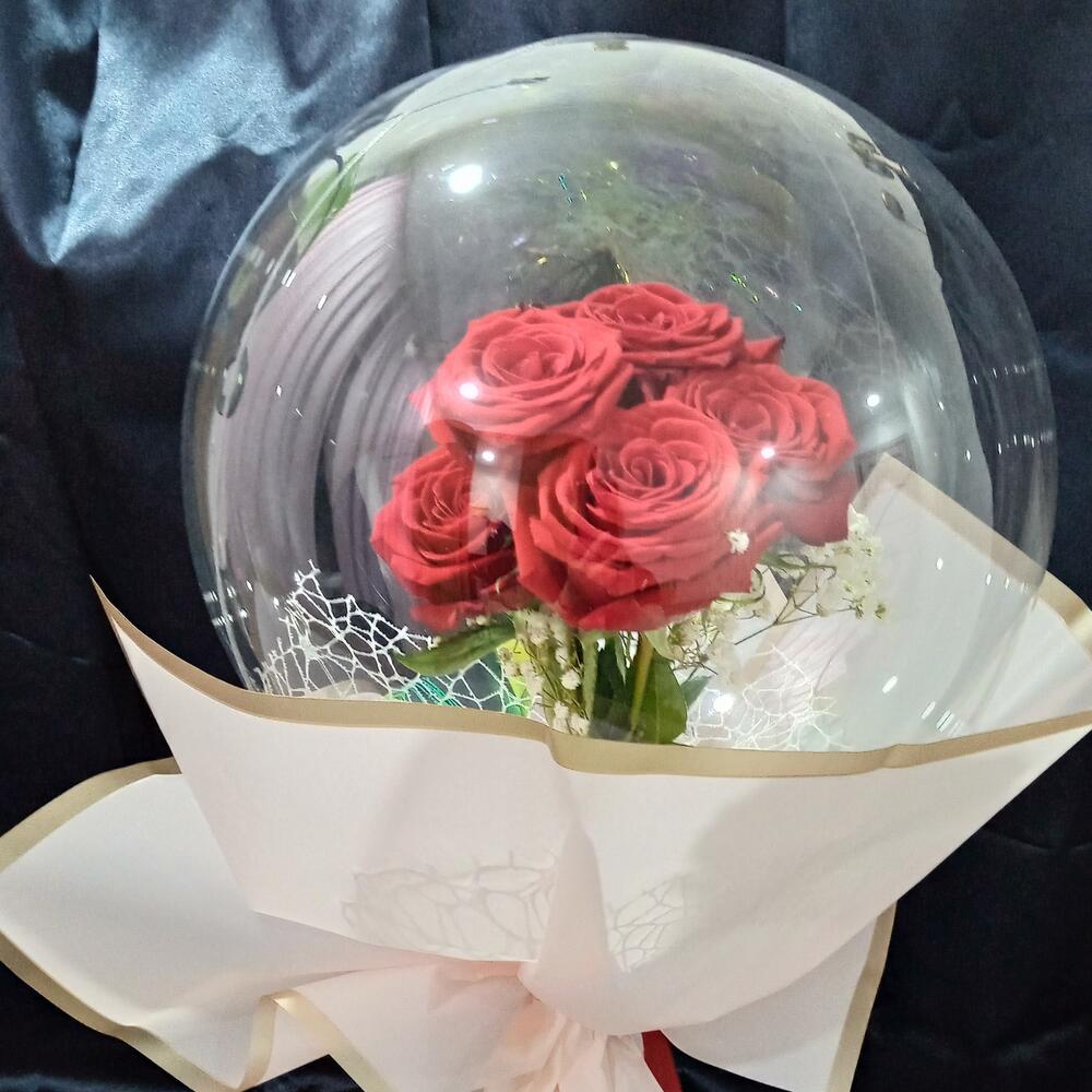 Роза - 5 шт. Гипсофила Белая - 1 шт. бумага флористическая - 2 шт. полимерный шар баблс - 1 шт.