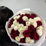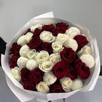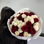 Валентинка — букет, созданный для самых тёплых чувств. Благородное сочетание белых и красных оттенков символизирует нежность, любовь и искренние эмоции. Он выглядит объёмно, свежо и очень эффектно, притягивая взгляд с первого момента. Этот букет идеально подойдёт для признания в чувствах, романтического свидания, годовщины или дня, когда хочется по-настоящему порадовать близкого человека. «Валентинка» говорит о важном без слов и оставляет после себя ощущение заботы, внимания и праздника.