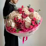 Этот авторский букет будет украшением любого торжества. Роскошные пионовидные розы наряду с нежными кустовыми розами - истинный символ изысканности и утонченности. Созвучием к ним становятся яркие гортензии, добавляющие букету объем и насыщенность. Приятный аромат эвкалипта придает композиции нотку свежести, делает ее неотразимой. Идеальный выбор для тех, кто ценит стиль и элегантность.