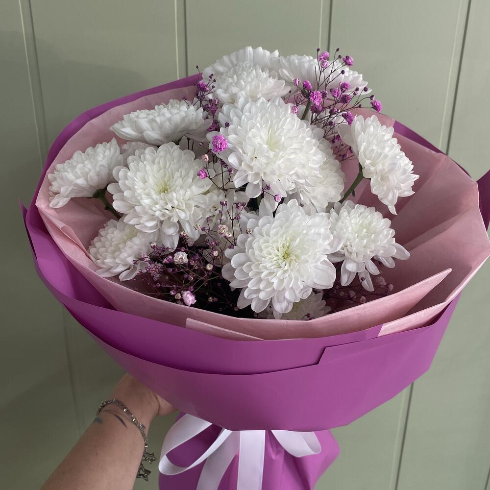 Хризантема кустовая - 3 шт. гипсофила радужная - 1 шт.